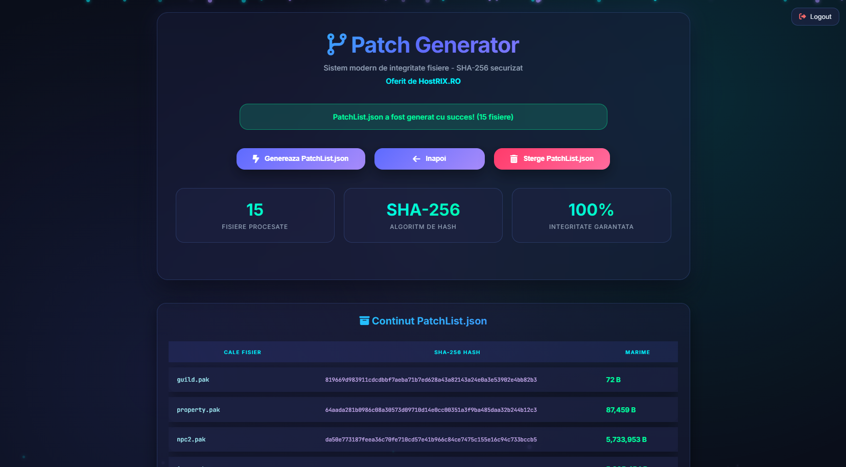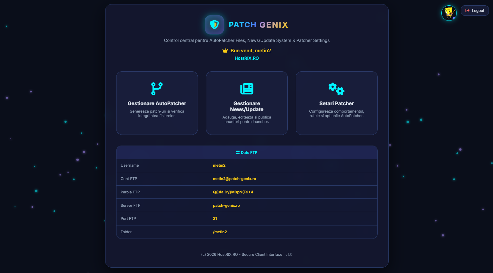 Patch-Genix (https://patch-genix.ro) este un sistem autopatcher profesional, dezvoltat special pentru clienții Hostrix, care permite distribuirea automată, rapidă și securizată a fișierelor, update-urilor și știrilor prin intermediul unui autopatcher.