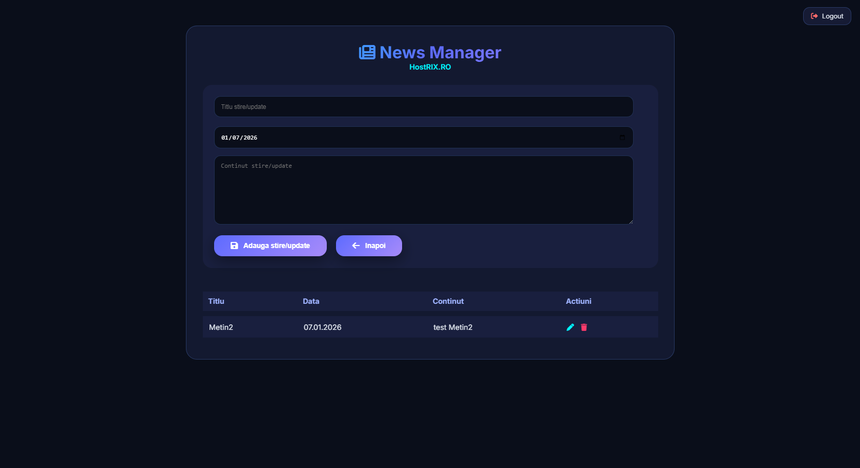 Adăugare News / Update