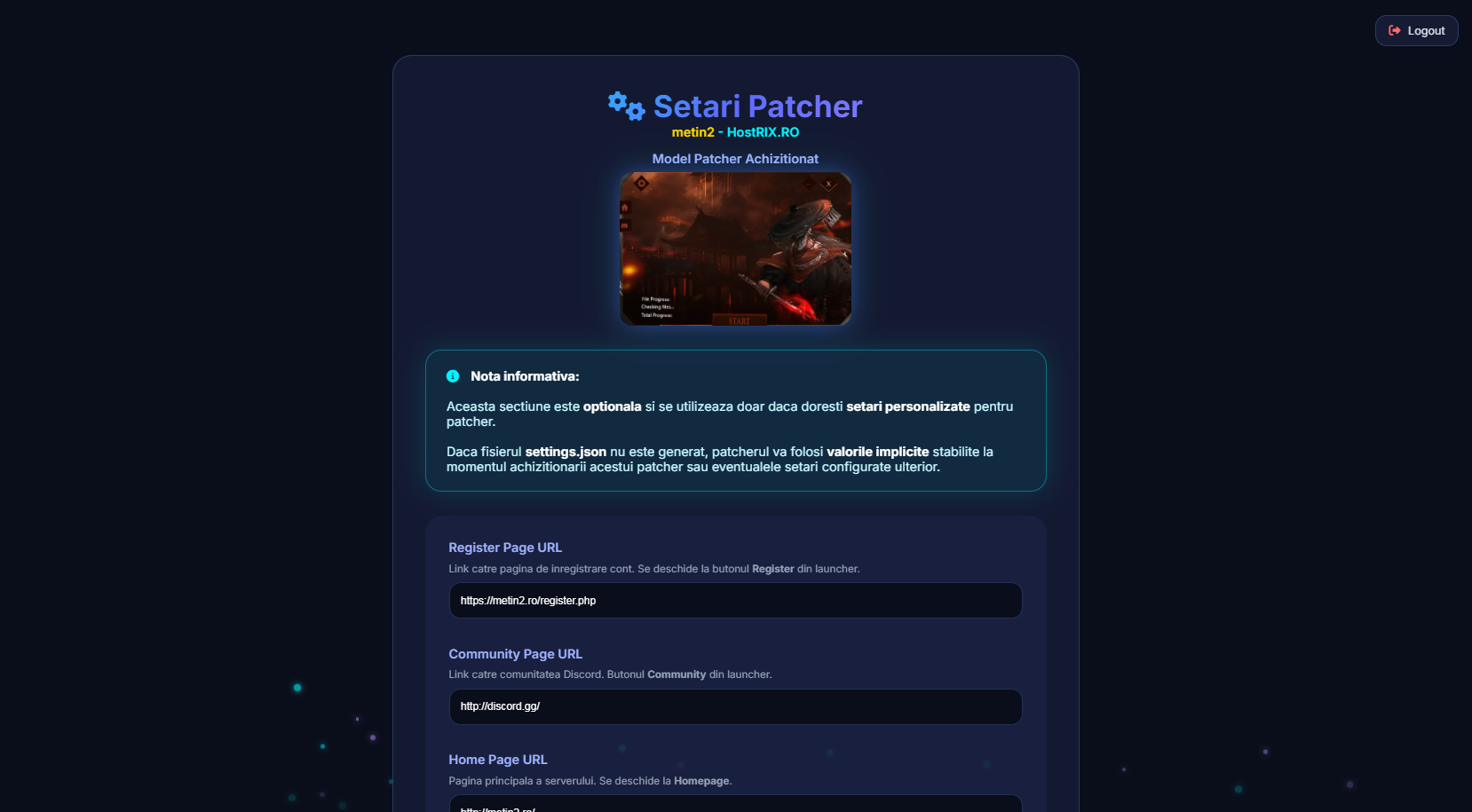 4. Setări Patcher (Opțional)